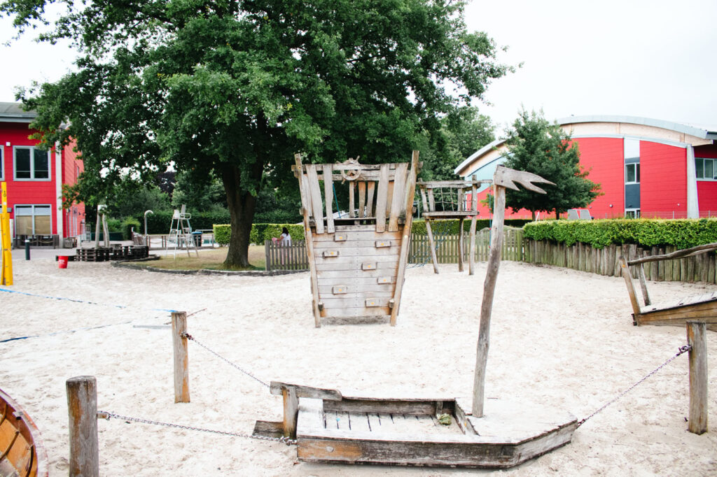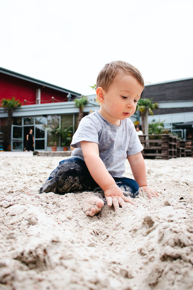 Beach Hamburg doesn’t scream “family destination,” but that’s part of the appeal. There’s no pastel-colored ball pit, but there is an open sandy space that kids can go wild in. No one bats an eye when toddlers start digging or throwing handfuls of sand into the air like it’s confetti.