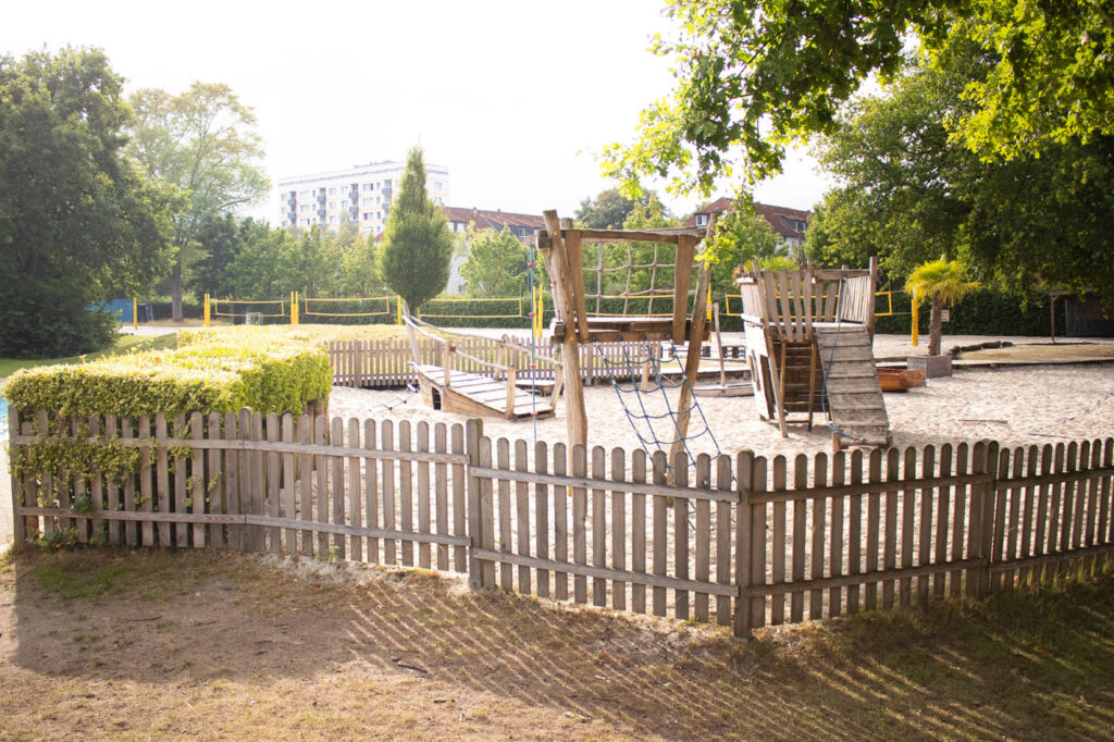 When the weather plays along, Beach Hamburg expands into a full outdoor setup complete with two shallow splash pools. They’re not fancy, but they’re clean, safe, and exactly what most kids want after five minutes of running barefoot in the sun. The water stays shallow enough for toddlers to stomp around while older kids dive into splash battles or practice cannonballs from a standing position. There’s plenty of room to stretch out nearby with loungers and umbrellas scattered across the deck area, and the open layout means you can keep an eye on things without having to hover poolside like a lifeguard. It’s less chaos, more chill — and one of the few places in Hamburg where water play doesn’t feel like a logistical nightmare.