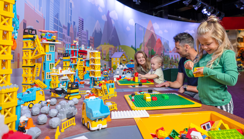 A large portion of the time is spent in hands-on building areas. These are not guided workshops in the traditional sense, but open tables filled with LEGO bricks where kids build whatever comes to mind, tear it down, and start again. Some children settle into focused building quickly, while others bounce between tables, constructing something briefly before moving on. Parents usually find themselves sitting or standing nearby, helping with connections, answering “can you help me with this?” requests, or quietly preventing towers from collapsing onto neighbouring builds.