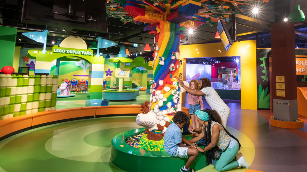 Between building zones, there are interactive elements that shift the energy level. Short rides and movement-based attractions give kids a physical outlet and help reset attention spans. These rides are not long or intense, but they add variety and break up long stretches of building. Queues are usually short thanks to timed entry, and rides are designed to move children through quickly rather than become the focus of the entire visit.