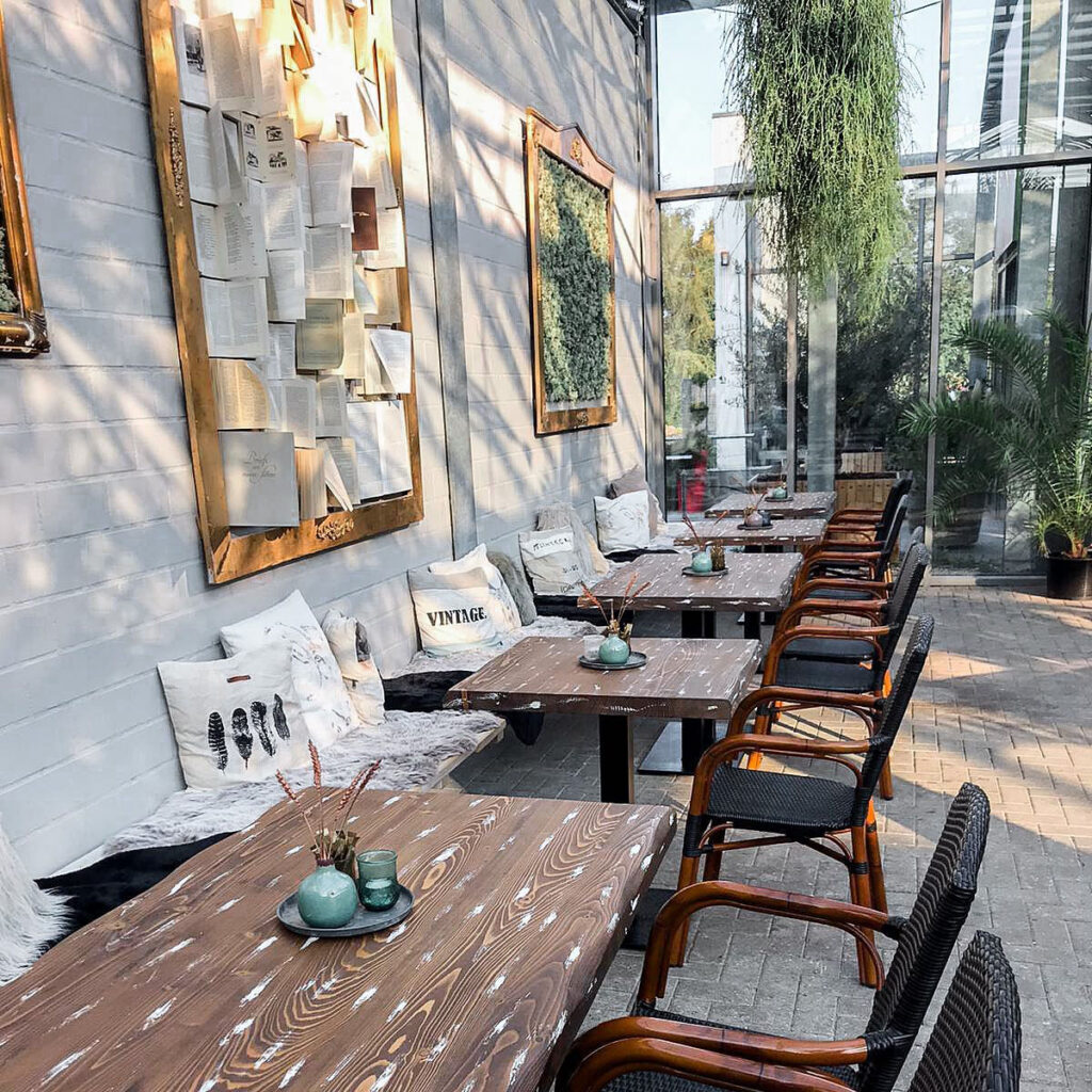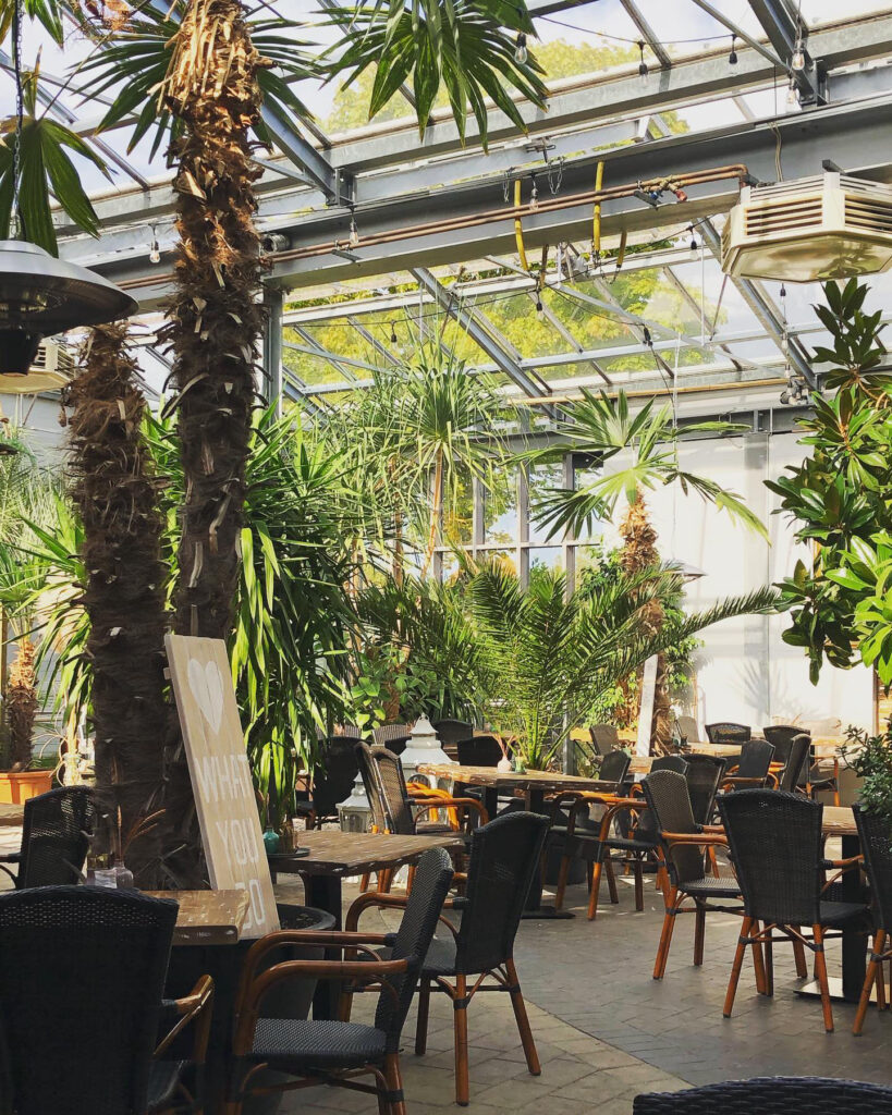 Palmencafé Hasloh sits just outside Hamburg, but when the sun’s out, it feels like you’ve teleported to a semi-tropical rest stop that serves schnitzel and smoothies. There are real palm trees, cushioned patio seating, and a bright, open dining space that feels very child friendly. The vibe? Casual. Locals roll in for breakfast, brunch, or cake and end up staying because the kids are actually occupied. The menu leans hearty and German. Omelets, burgers, schnitzel, pancakes, and sweet stuff that comes in portions your toddler will definitely not finish (but that’s fine, because you will)